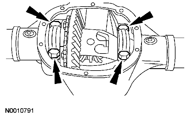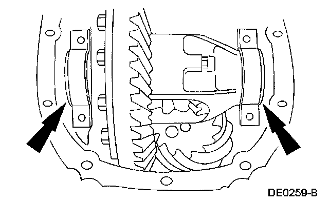 5. CAUTION: Mark the position of the differential bearing caps, as the arrows may not be visible. Always install the bearing caps in their identical locations and positions.