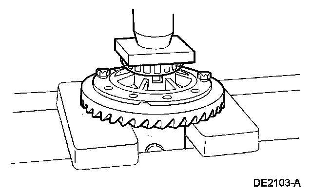 2. Position the differential ring gear and the differential case. Align the bolt holes by starting 2 bolts through the holes in the differential case and the differential ring gear. Press the differential ring gear on the differential case.