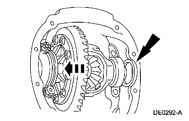 7. Install progressively larger differential bearing shims on the right side until the largest shim selected can be installed by hand.