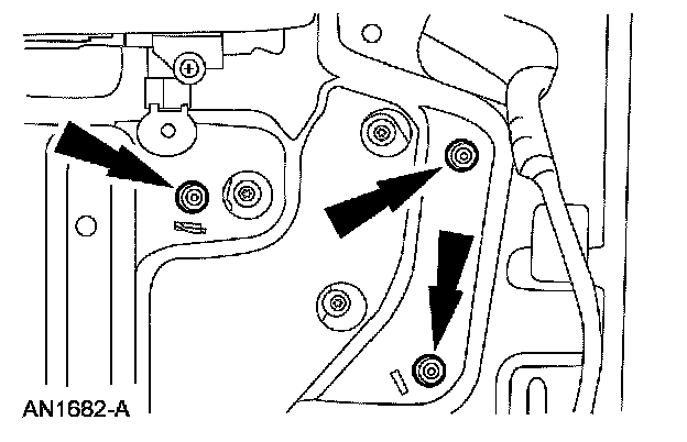 5. Remove the 2 rear door window regulator nuts.