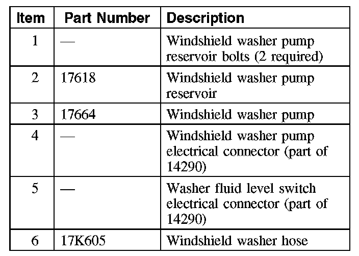 6. CAUTION: Do not operate the windshield washer pump prior to filling the windshield reservoir.