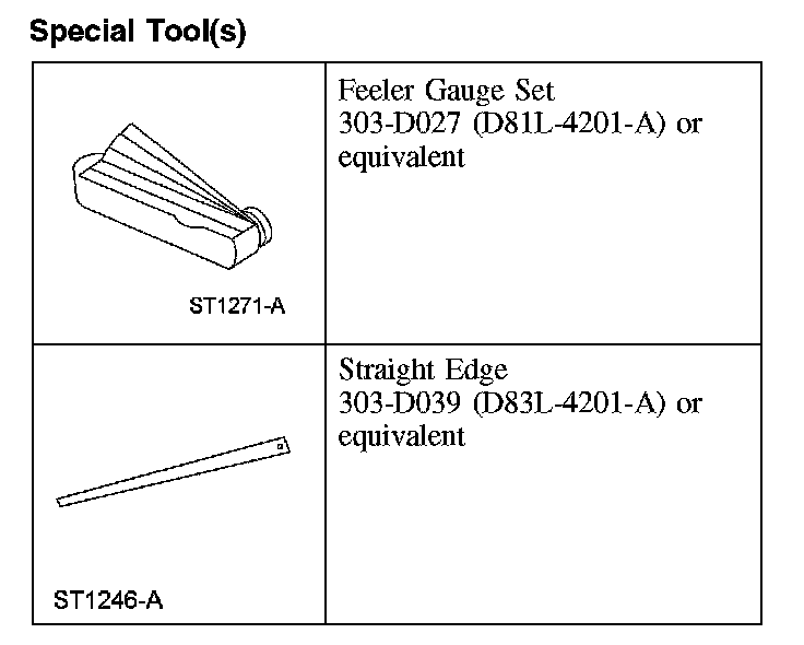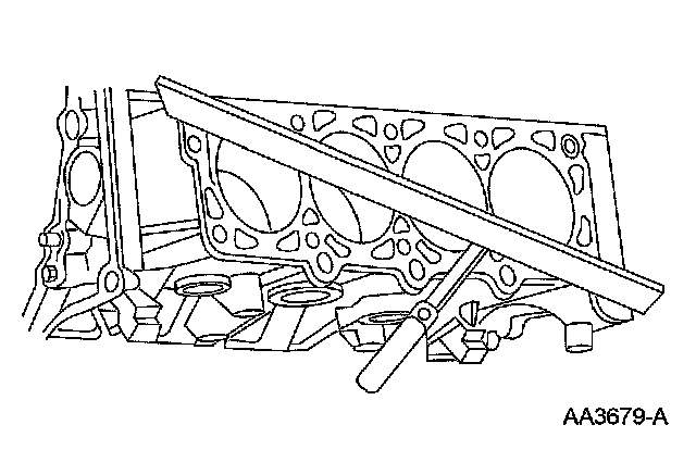 1. Use a straight edge and a feeler gauge to inspect the cylinder block for flatness.