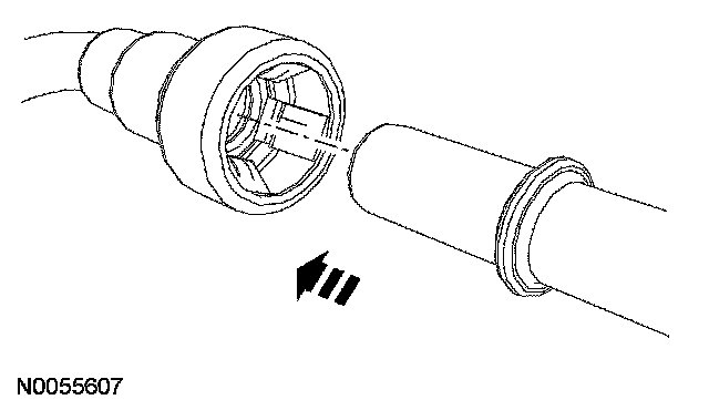 CAUTION: When reusing liquid or vapor tube connectors, make sure to use compressed air to remove any foreign material from the connector retaining clip area before separating from the tube. Apply clean engine oil to the end of the tube before inserting the tube into the connector.