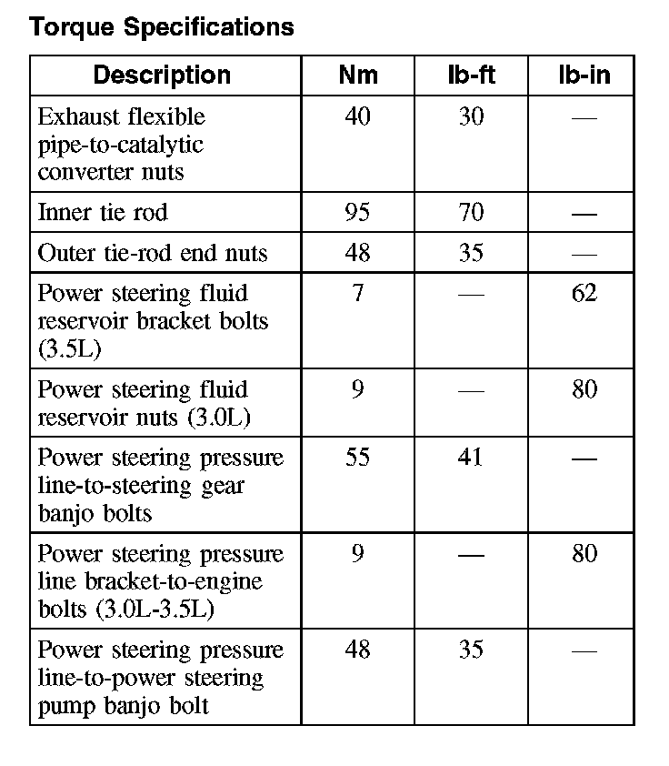 Torque Specifications: