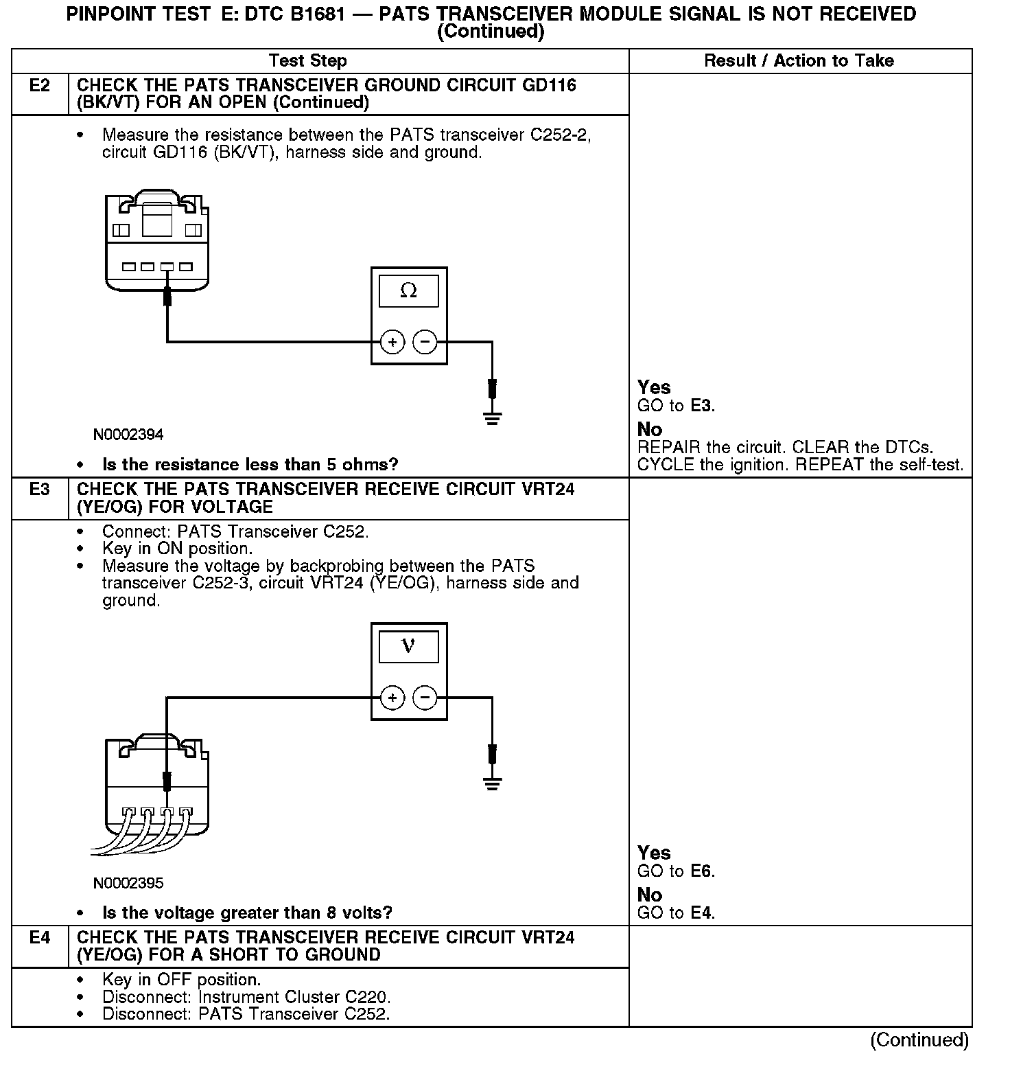PINPOINT TEST E: DTC B1681 - PATS TRANSCEIVER MODULE SIGNAL IS NOT RECEIVEDE1-E2: