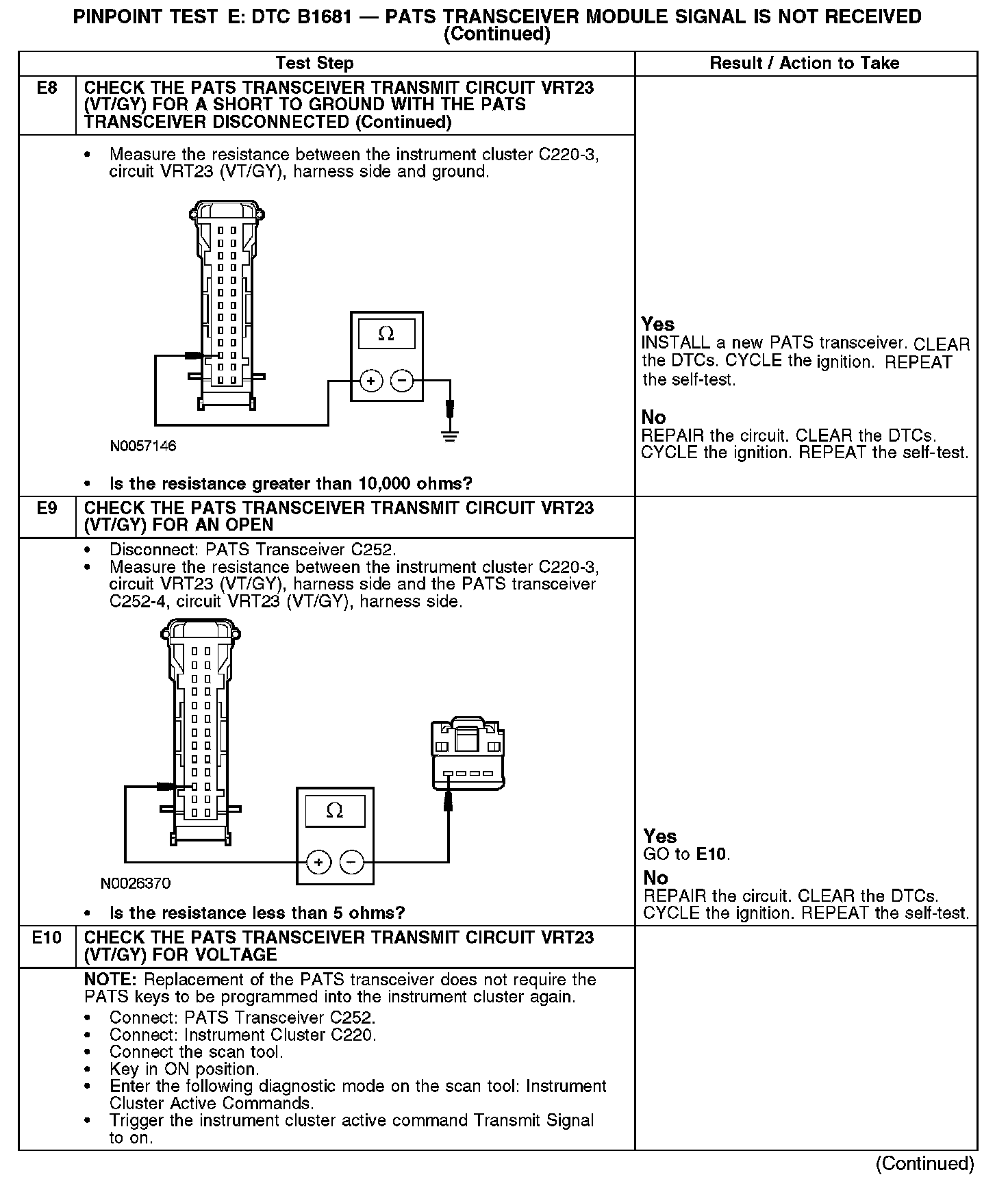 Test E: DTC B1681 - PATS Transceiver Module Signal Is Not Received