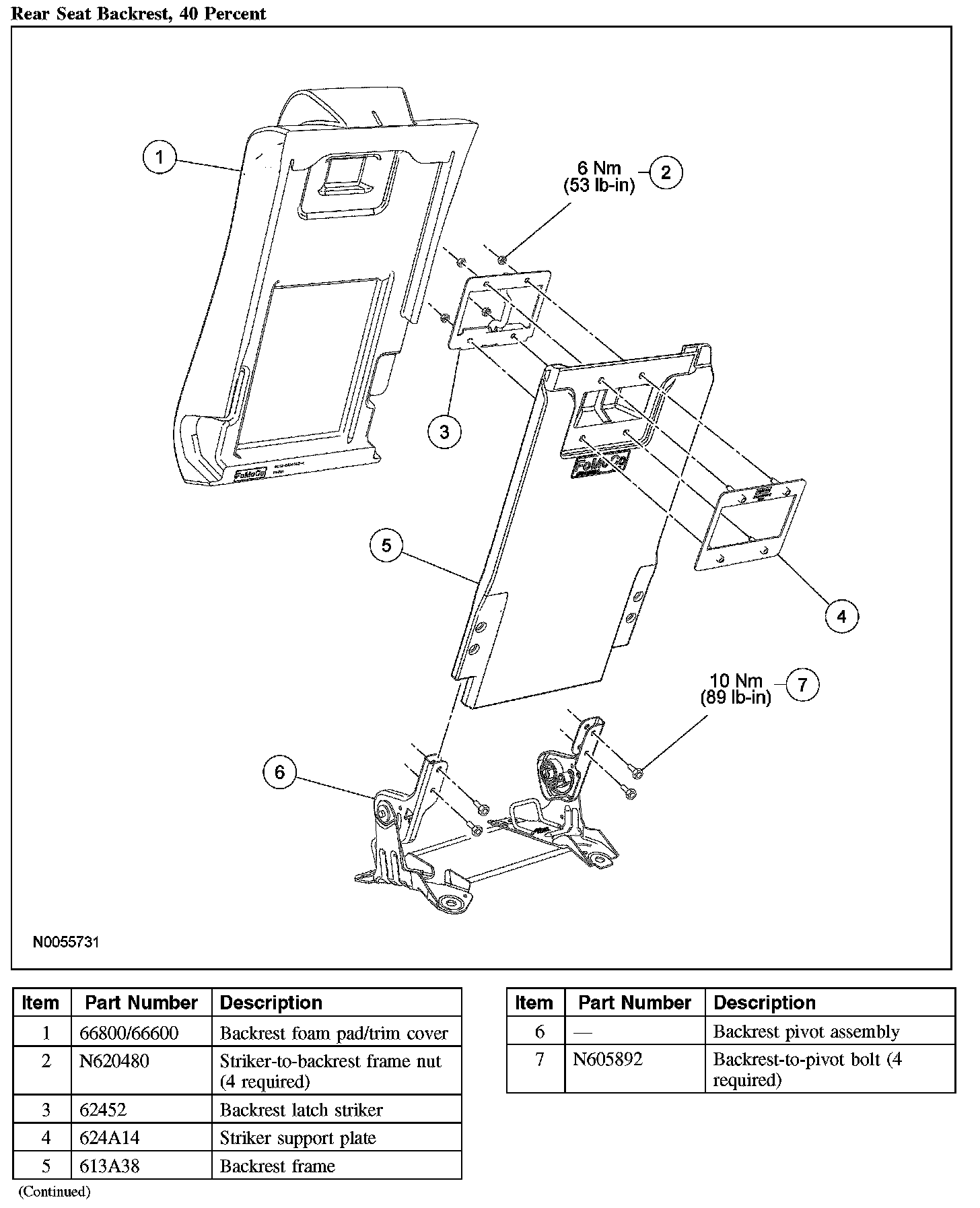 8. Install the 60 percent rear seat backrest assembly.