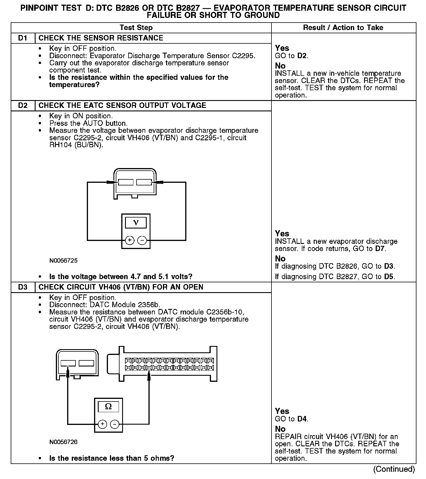 PINPOINT TEST D: DTC B2826 OR DTC B2827 - EVAPORATOR TEMPERATURE SENSOR CIRCUIT FAILURE OR SHORT TO GROUNDD1-D3: