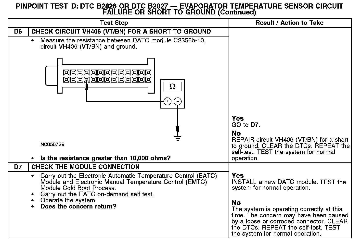 Test D: DTC B2826 or DTC B2827 - Evaporator Temperature Sensor Circuit Failure or Short to Ground