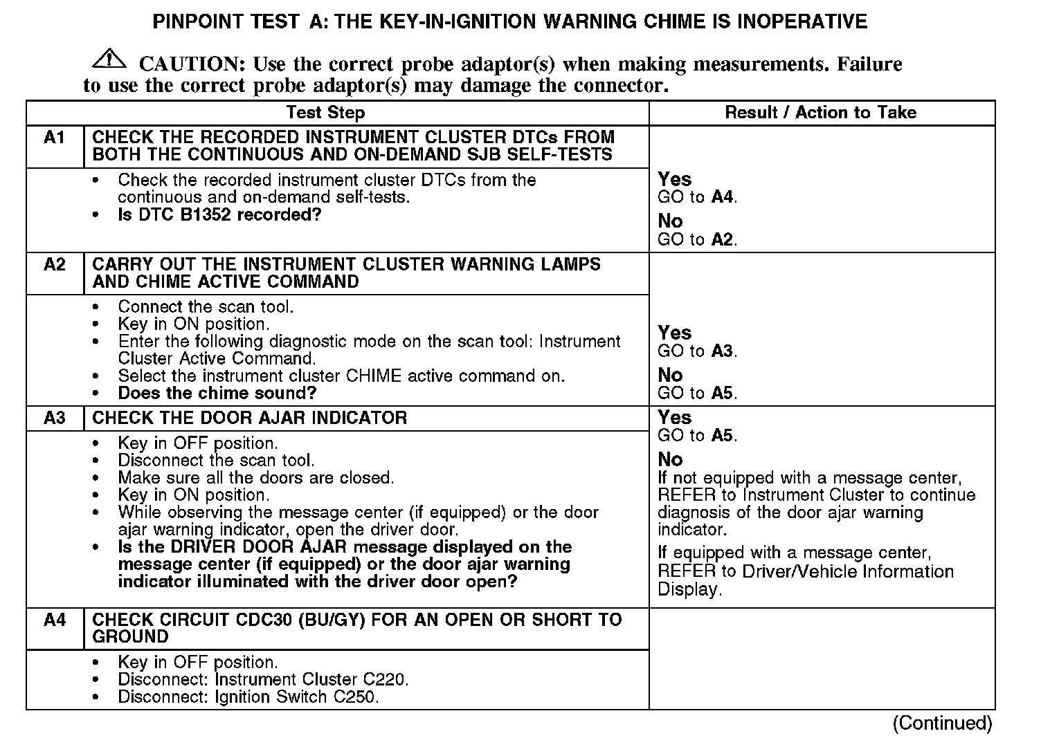 PINPOINT TEST A: THE KEY-IN-IGNITION WARNING CHIME IS INOPERATIVEA1-A4: