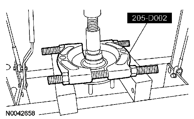 9. Using the special tool, press the wheel hub from the wheel bearing.