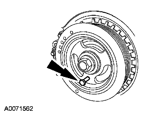 5. Remove the 6 mm (0.23 in) bolt from the crankshaft pulley.