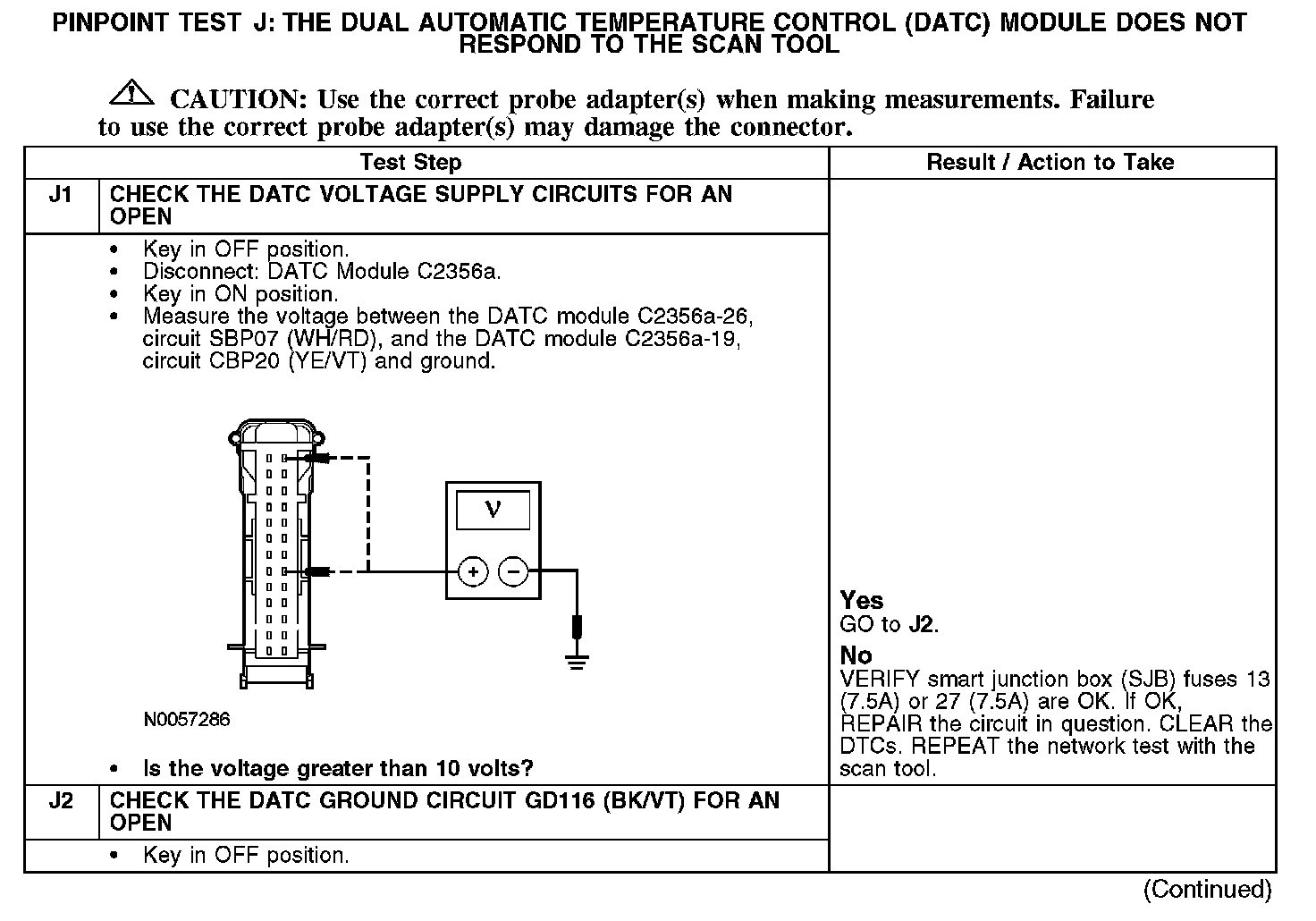 PINPOINT TEST J: THE DUAL AUTOMATIC TEMPERATURE CONTROL (DATC) MODULE DOES NOT RESPOND TO THE SCAN TOOLJ1-J2: