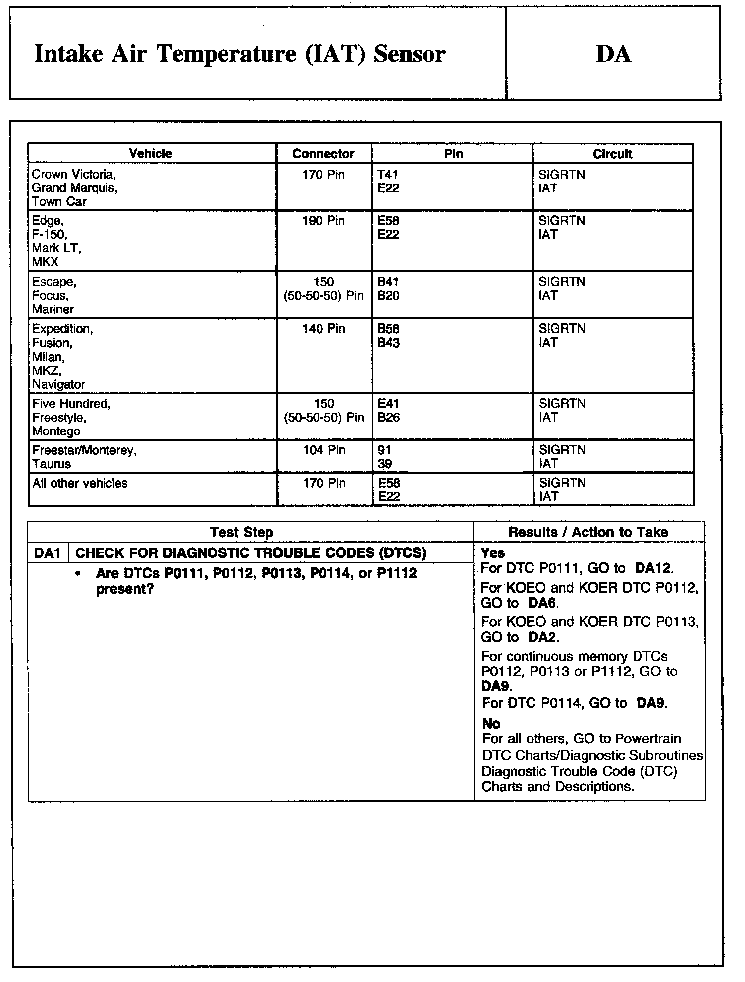 PINPOINT TEST DA: INTAKE AIR TEMPERATURE (IAT) SENSOR