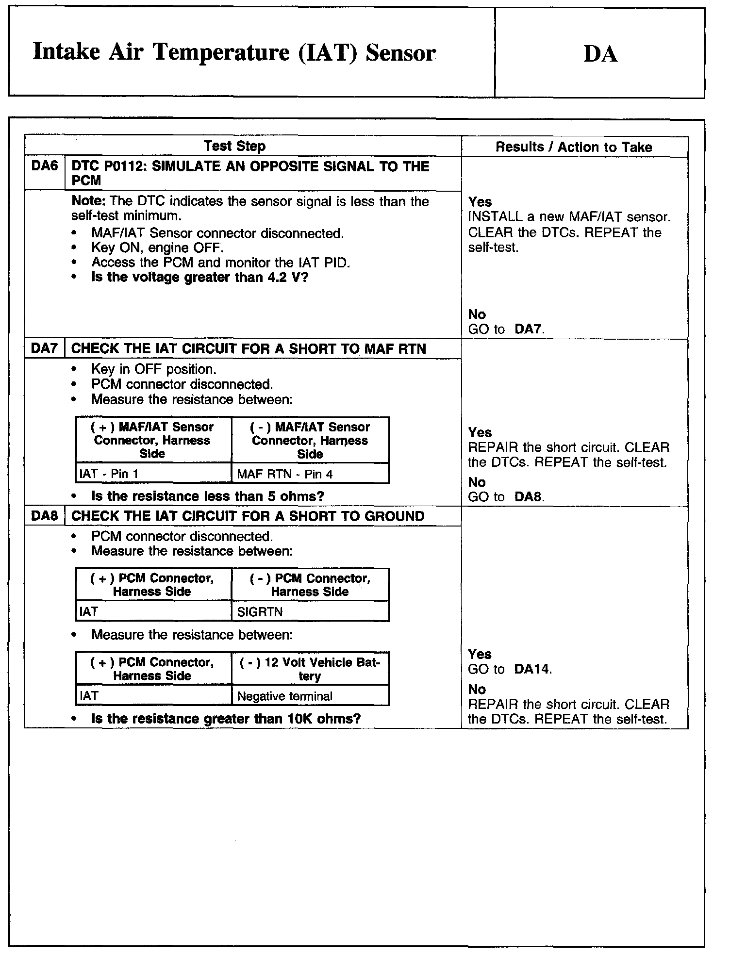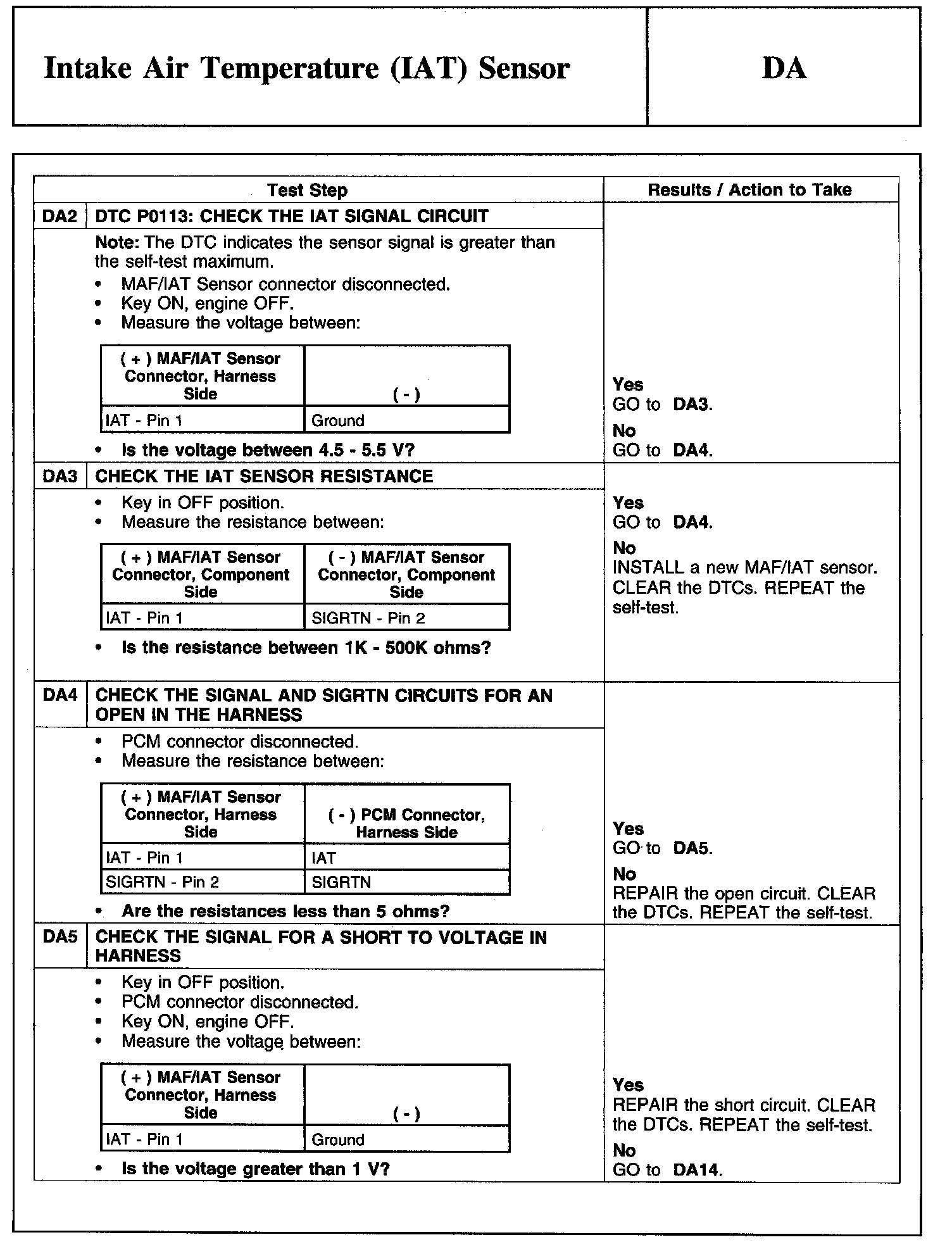 Tests DA: Intake Air Temperature (IAT) Sensor
