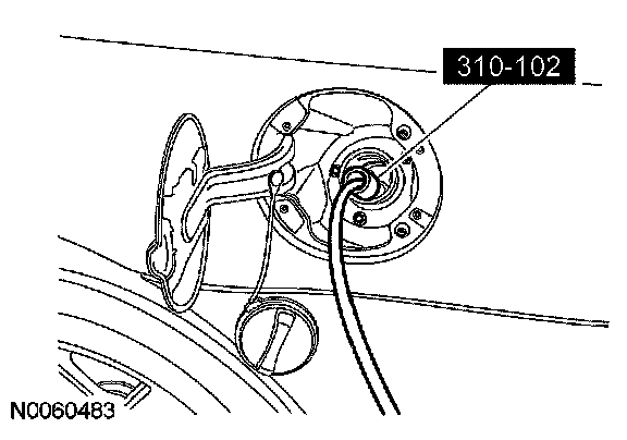 NOTE: The special tool must be inserted into the fuel tank filler pipe until the fitting on the end of the hose enters into the fuel tank spout, opening the one-way flapper valve.