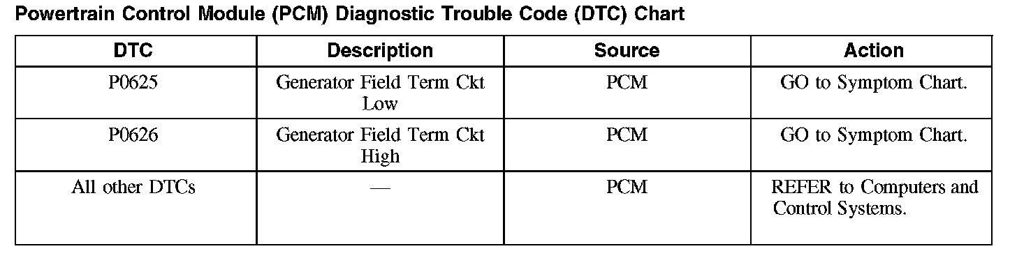 Powertrain Control Module (PCM) Diagnostic Trouble Code (DTC) Chart