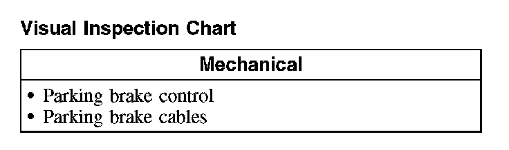Check the operation of the parking brake system with the vehicle on a hoist and the parking brake control fully released. Check for any damaged cables and install new components as necessary.