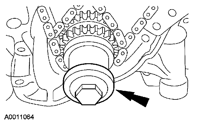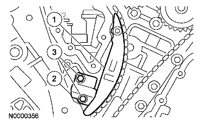 9. Install the LH timing chain tensioner arm and the LH timing chain tensioner.