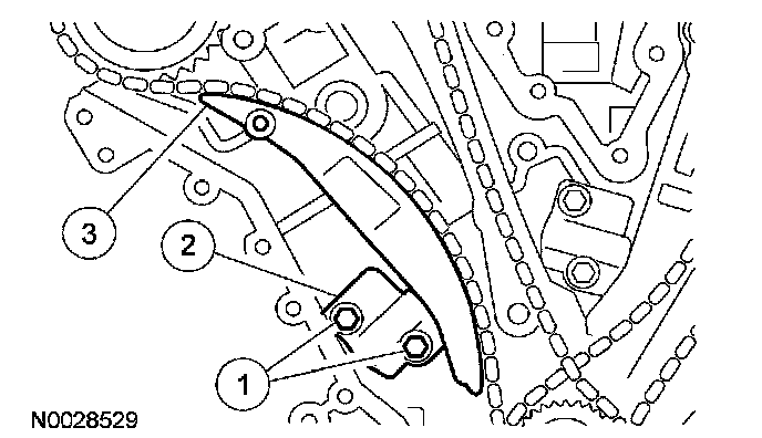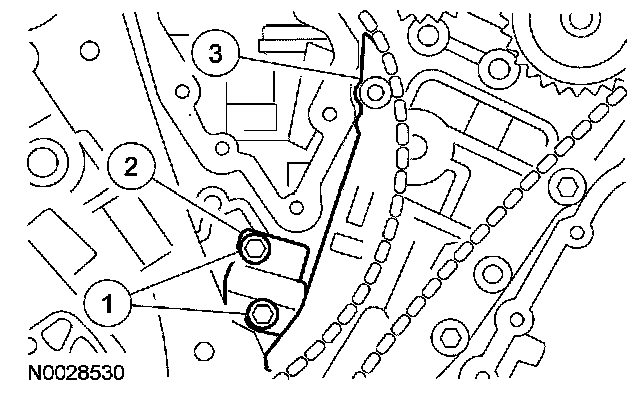 9. Remove the bolts, RH timing chain guide and the timing chain.