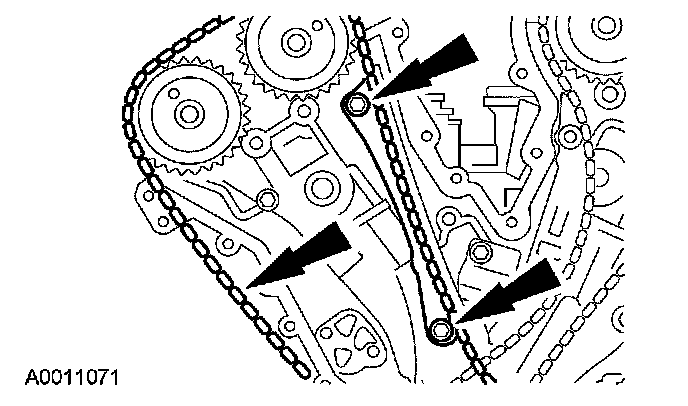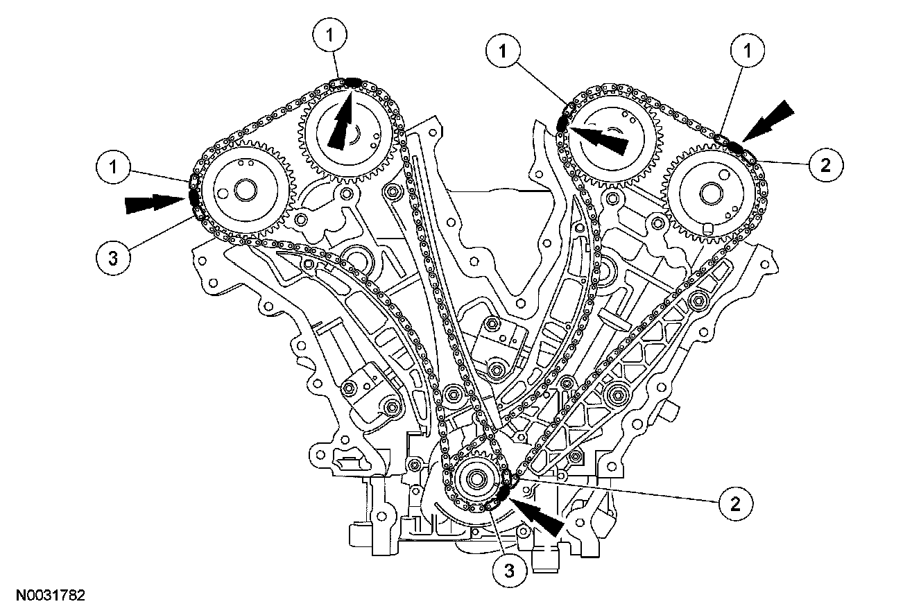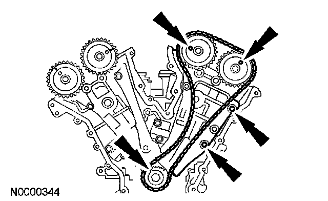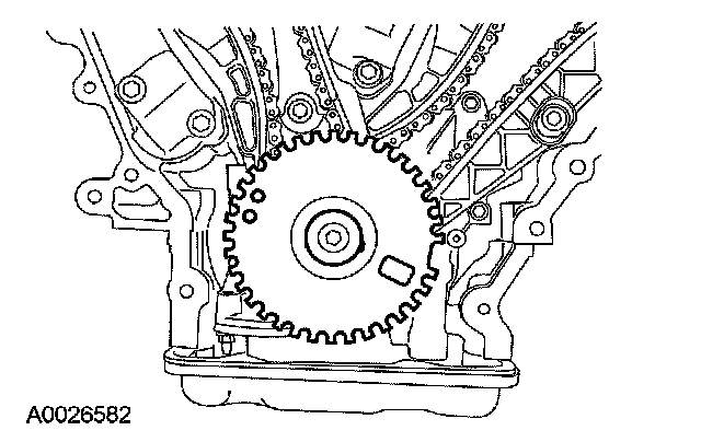 6. If timing marks in the timing chains are not evident, use a permanent-type marker to mark the crankshaft and camshaft timing marks on the LH and RH timing chains.