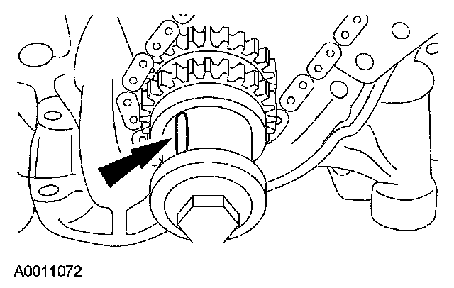 5. Retain the tensioner piston with a 1.5 mm (0.05 in) wire or paper clip.