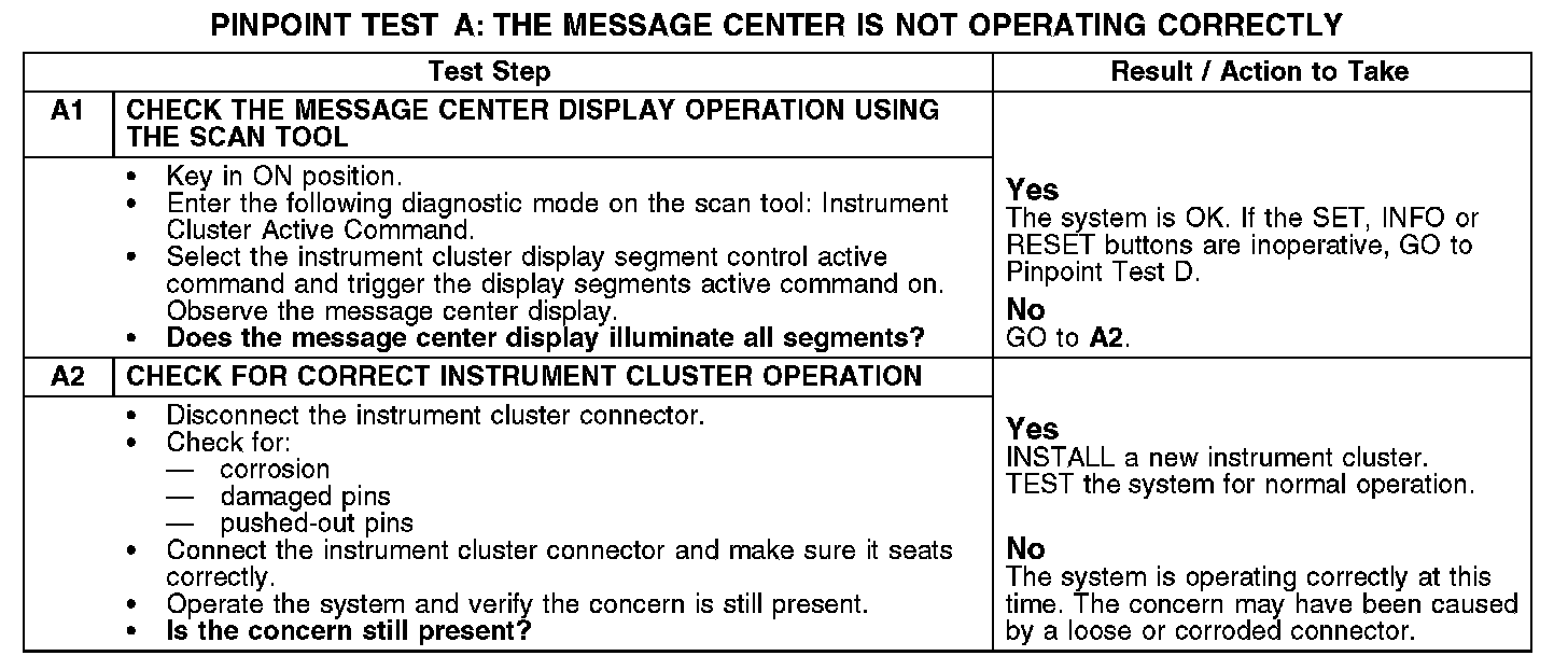 PINPOINT TEST A: THE MESSAGE CENTER IS NOT OPERATING CORRECTLYA1-A2: