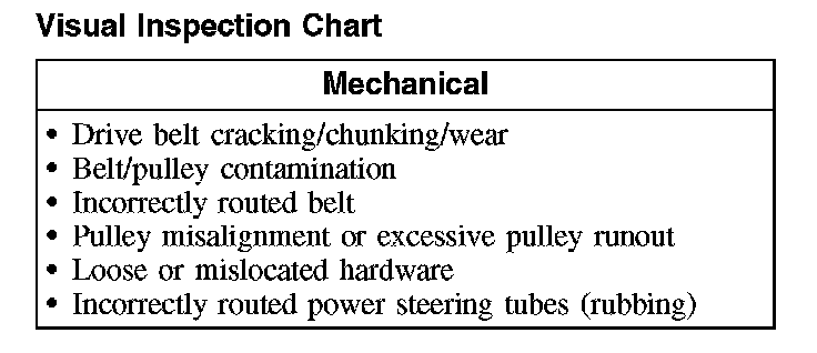 3. Eliminate all other non-belt related noises that could cause belt misdiagnosis, such as A/C compressor engagement chirp, power steering cavitations at low temperatures, variable camshaft timing (VCT) tick or generator whine.