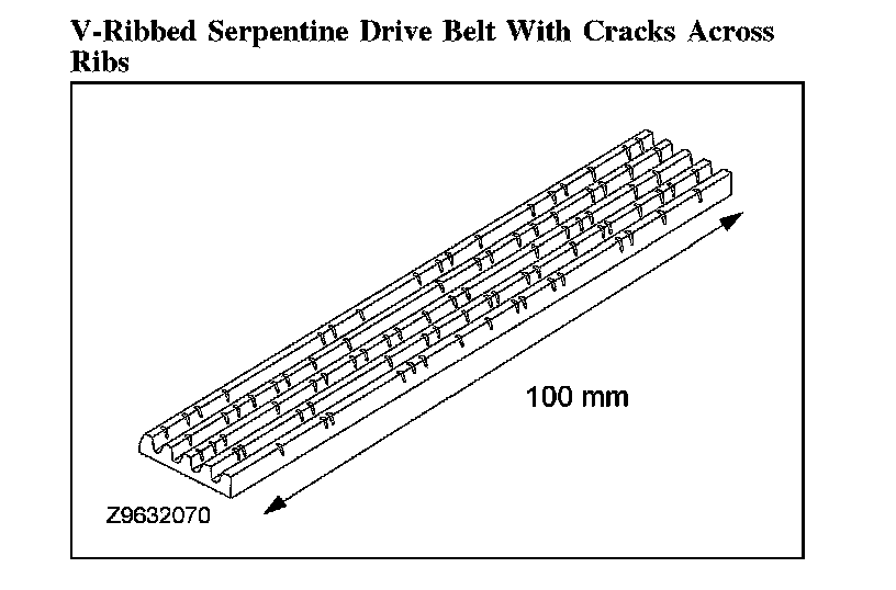 6. The condition of the V-ribbed drive belt should be compared against the illustration and appropriate action taken.