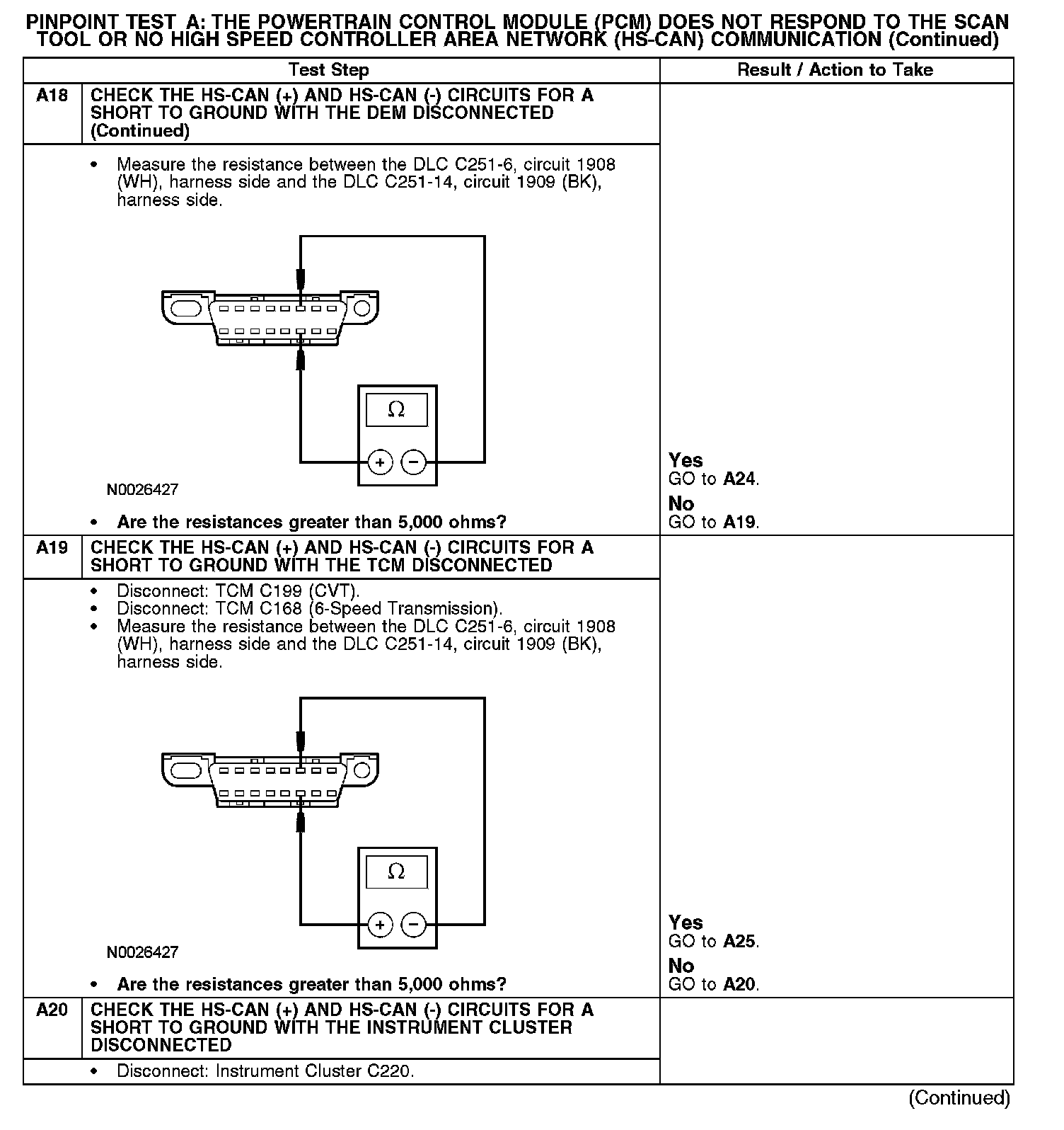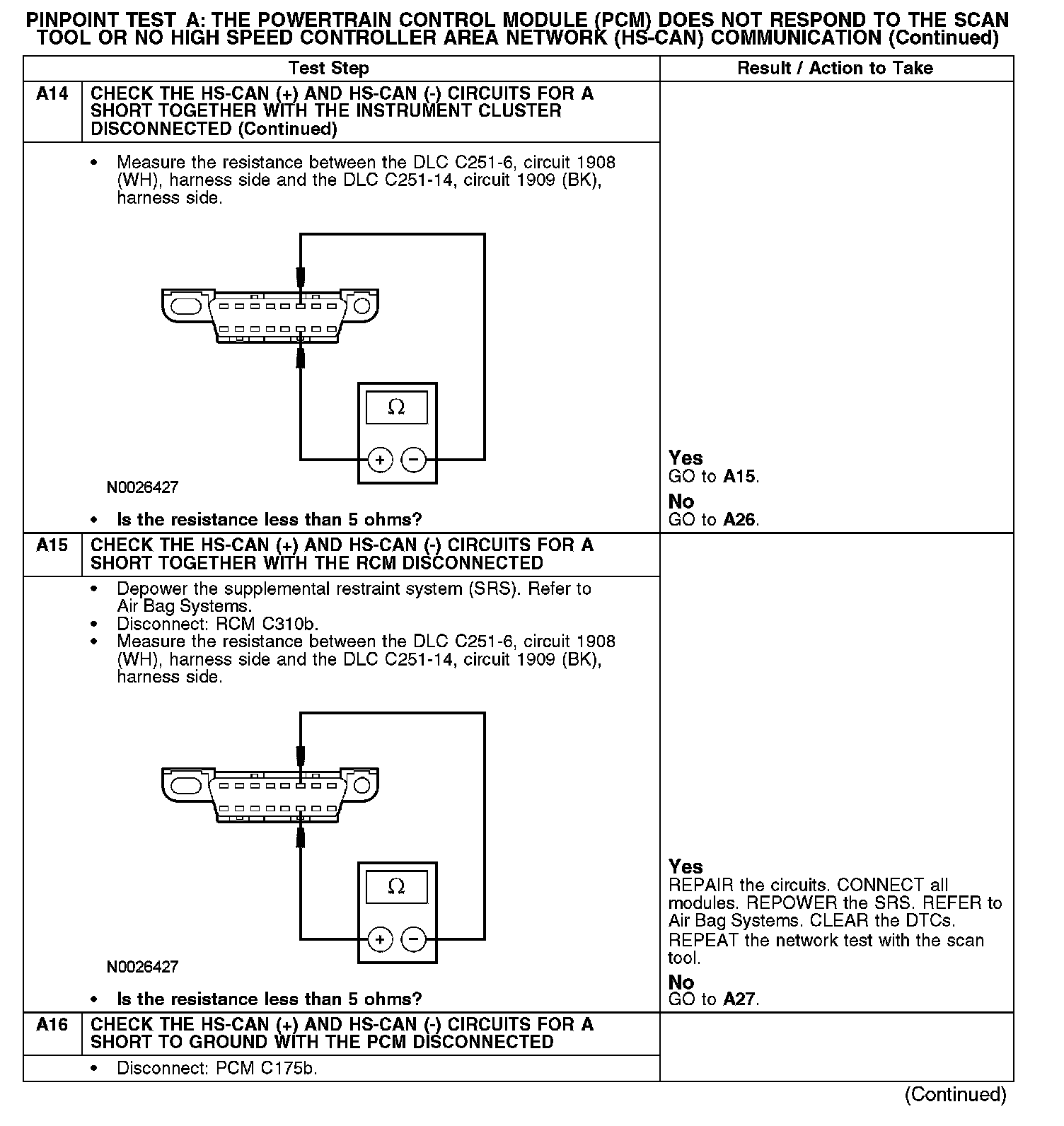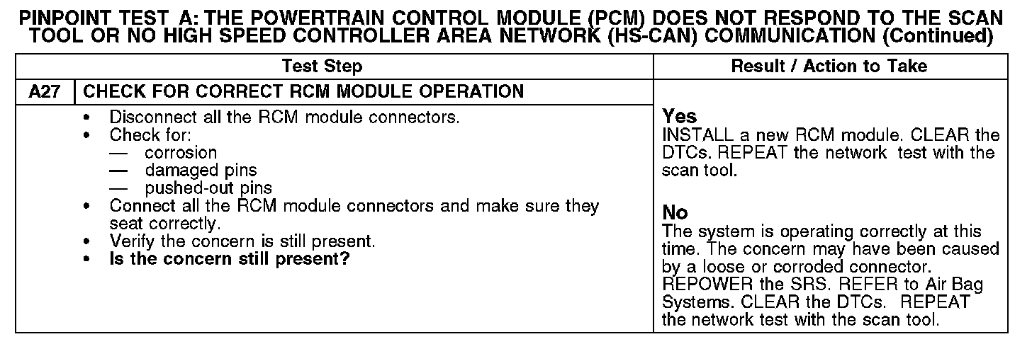 Test A: The Powertrain Control Module(PCM) Does Not Respond To The Scan Tool, or No High Speed Controller Area Network (HS-CAN)