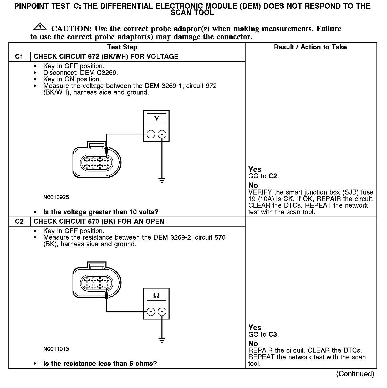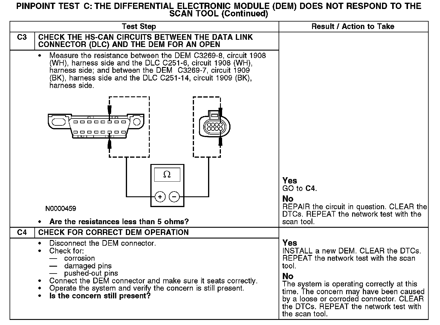 PINPOINT TEST C: THE DIFFERENTIAL ELECTRONIC MODULE (DEM) DOES NOT RESPOND TO THE SCAN TOOLC1-C2: