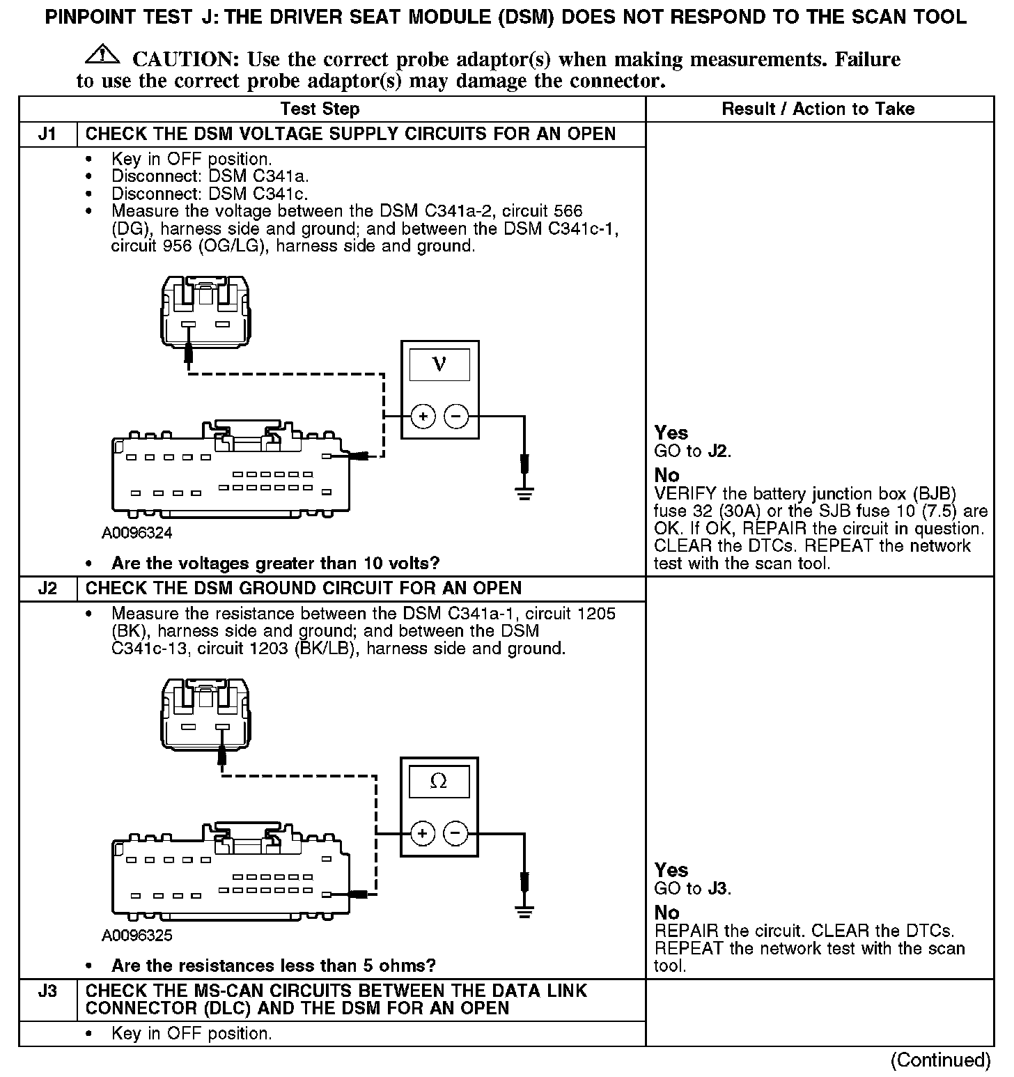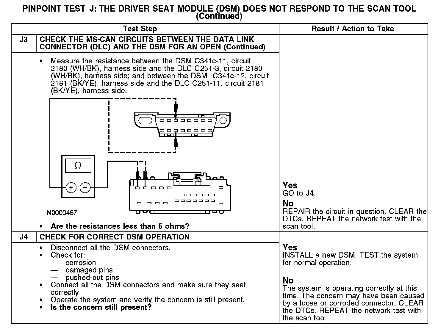 PINPOINT TEST J: THE DRIVER SEAT MODULE (DSM) DOES NOT RESPOND TO THE SCAN TOOLJ1-J3:
