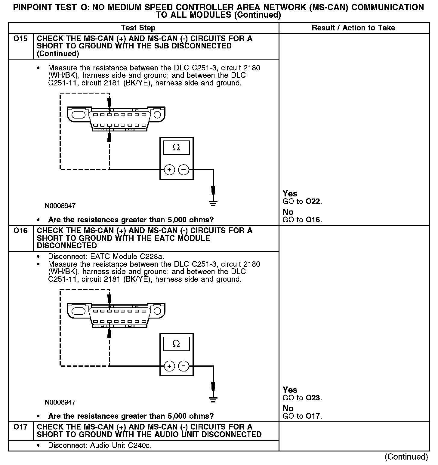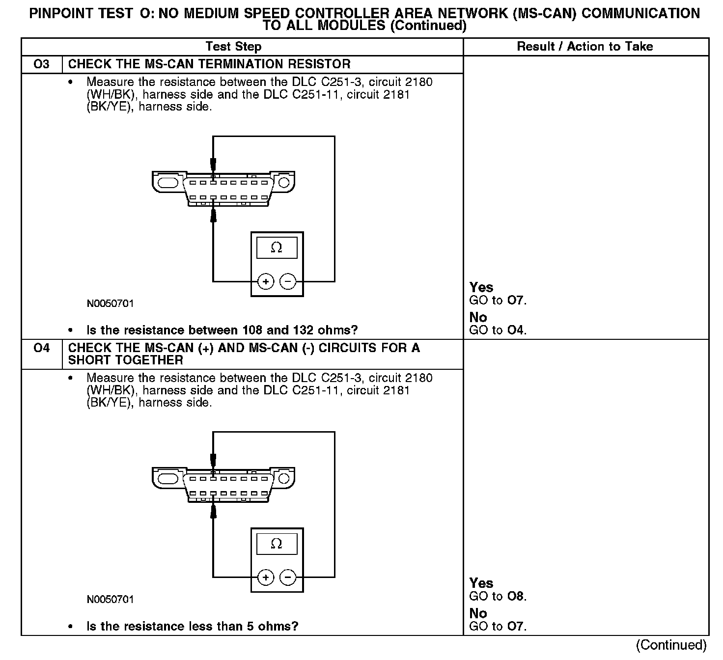 - Circuit 2180 (WH/BK) (MS-CAN +) and circuit 2181 (BK/YE) (MS-CAN -) shorted together