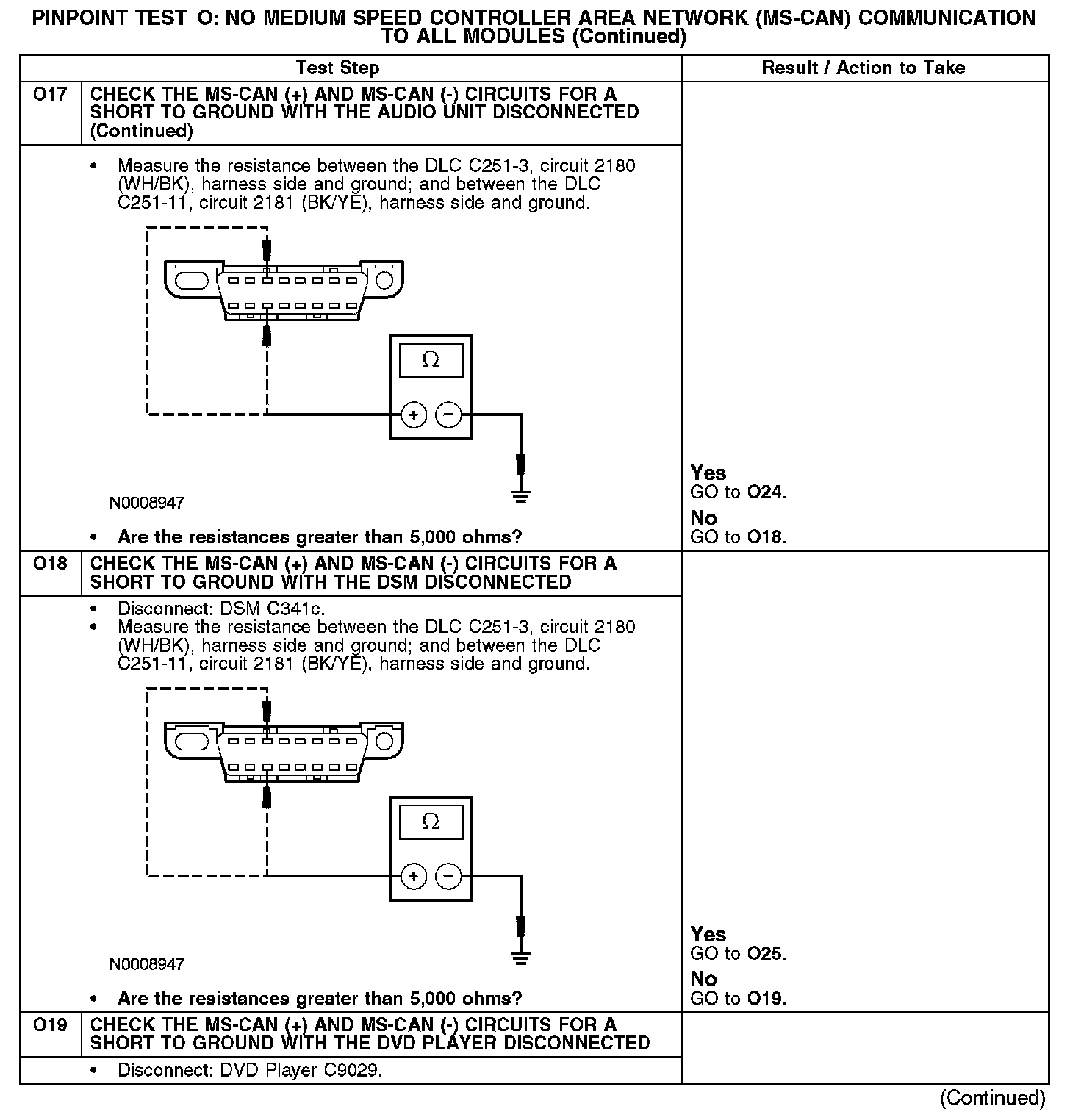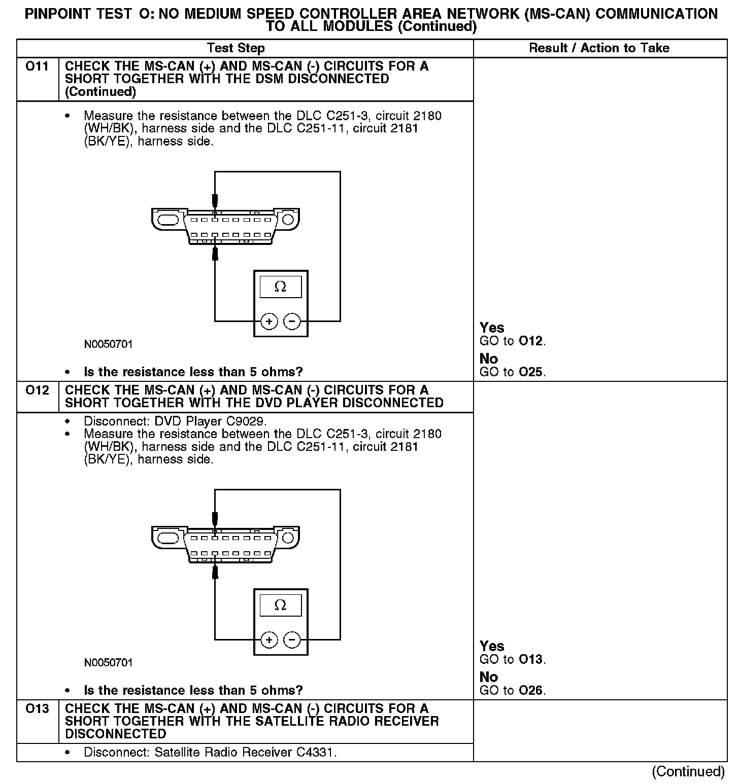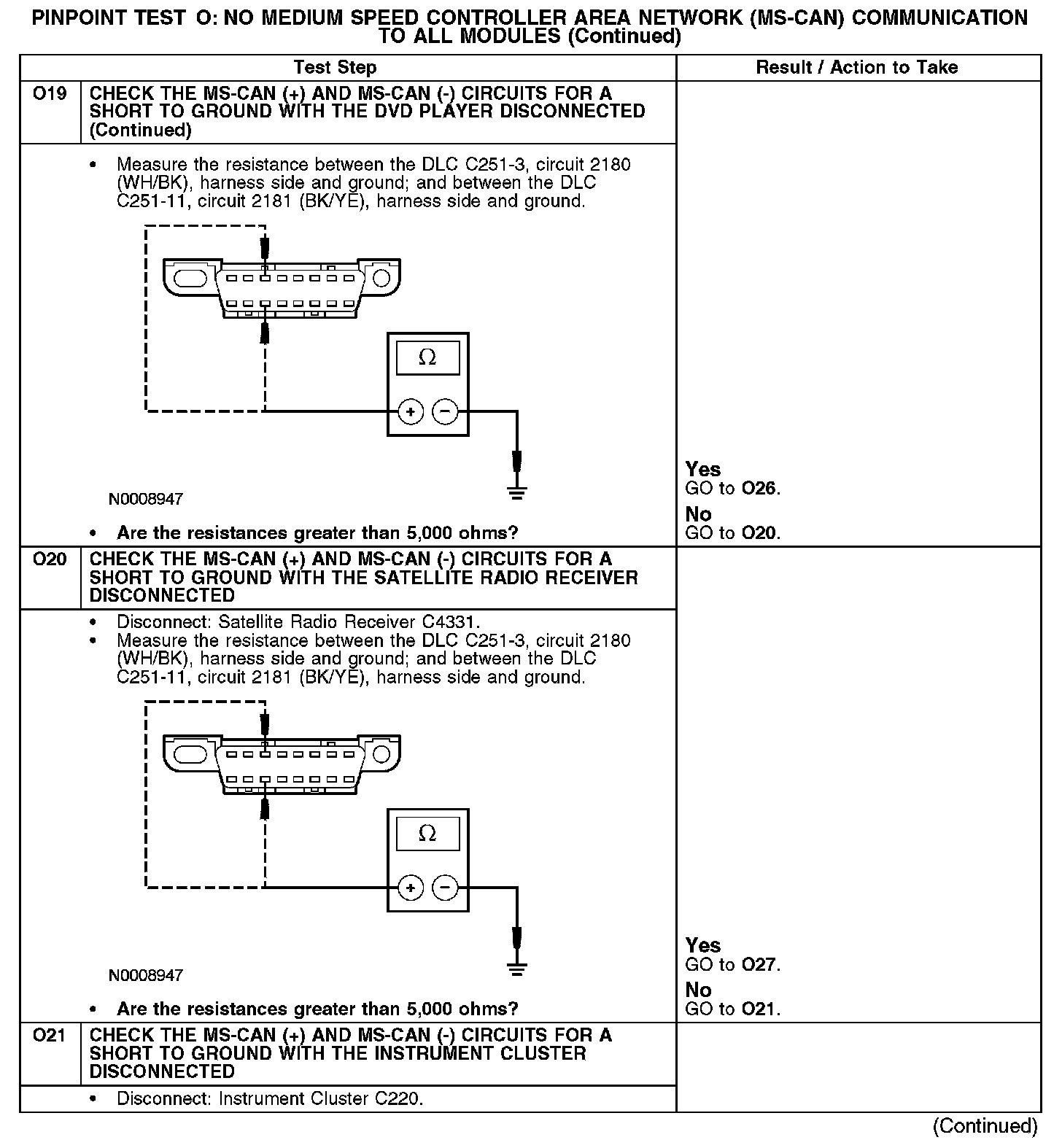 - Circuit 2181 (BK/YE) open, short to ground or voltage (MS-CAN -)