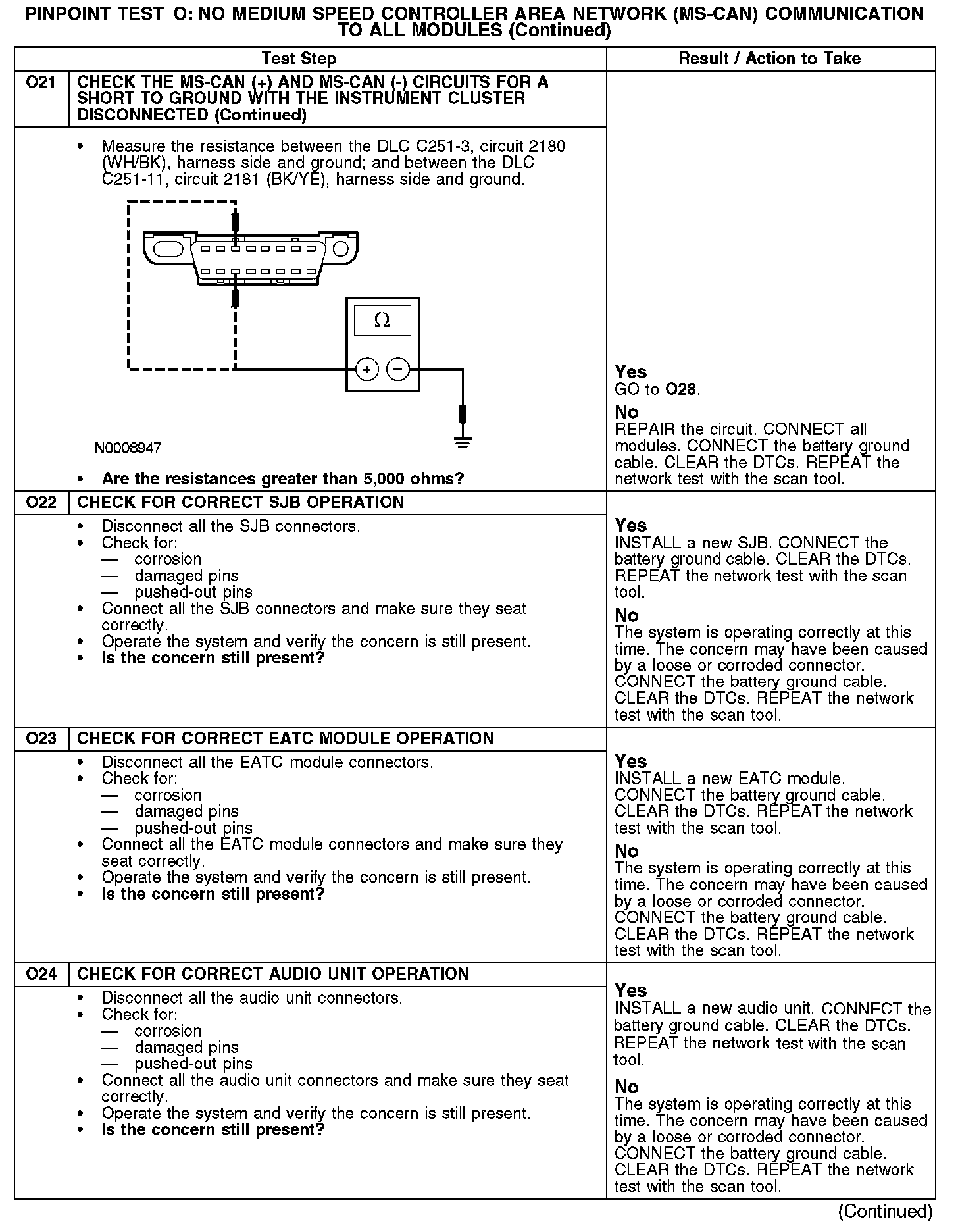 Test O: No Medium Speed Controller Area Network (MS-CAN) Communication, All Modules Are Not Responding