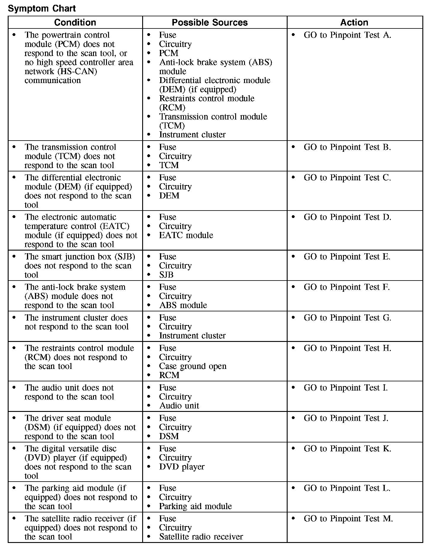 Symptom Chart (Part 1):