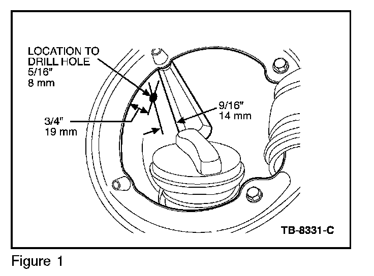 Install revised fuel cap (hole already in correct position - 3 o'clock) following Steps 6 and 7 of Service Procedure A.