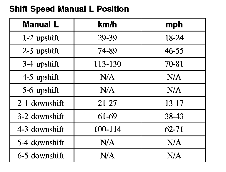 Shift Speed Manual L Position: