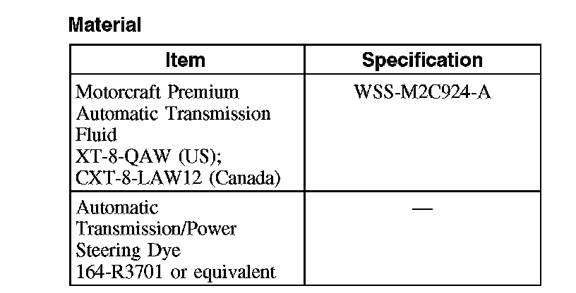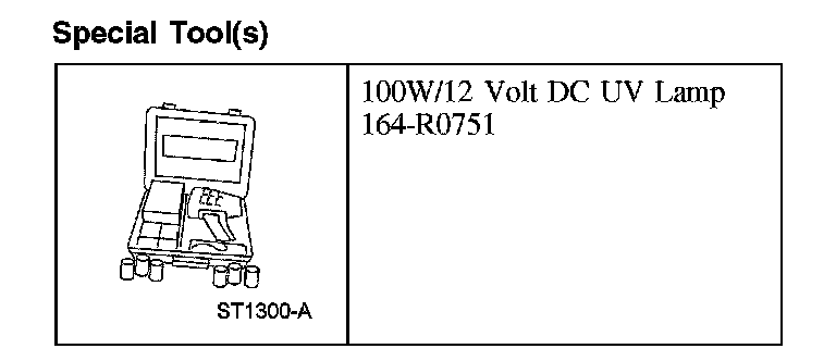 Automatic Transmission/Power Steering Dye 164-R3701 or equivalent (specifically formulated for ATF) is used to detect a transmission fluid leak.