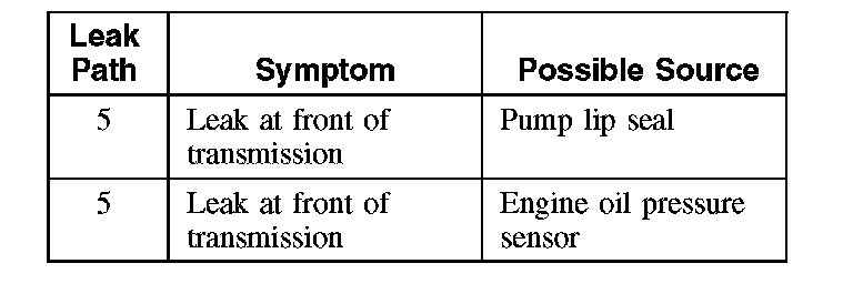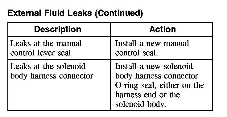 Use the following chart to inspect and correct any external transmission fluid leaks.