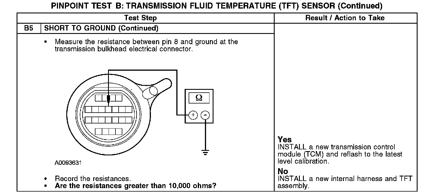 TEST B: TRANSMISSION FLUID TEMPERATURE (TFT) SENSOR