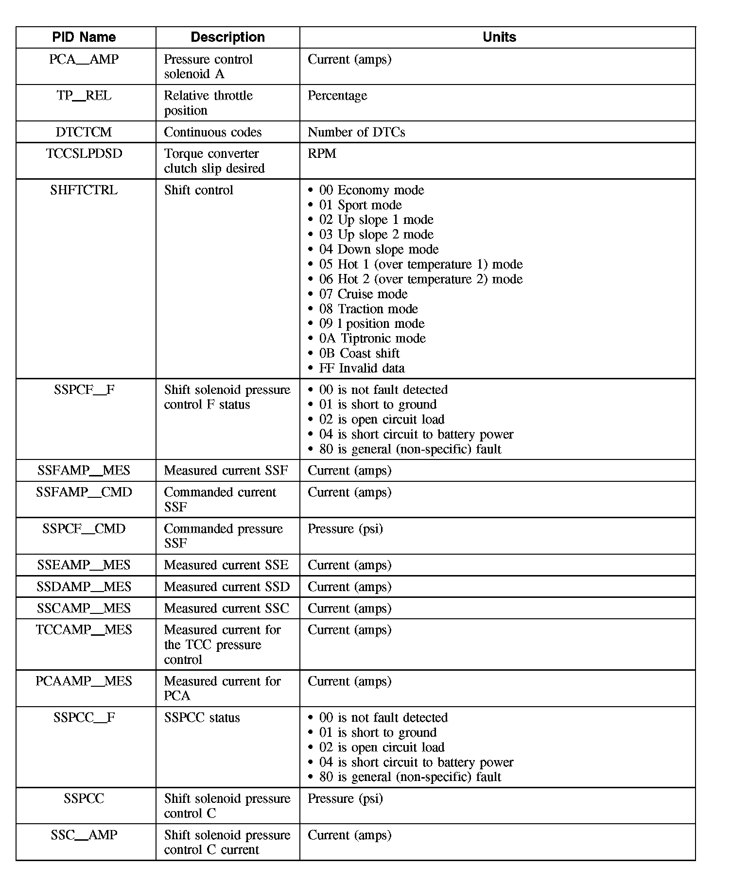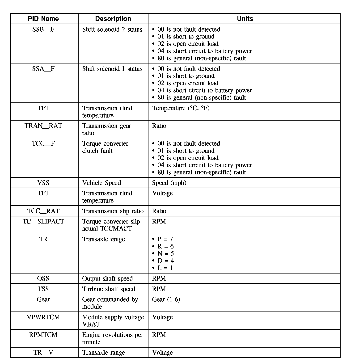 Diagnostic Parameters Identification (PID) Chart
