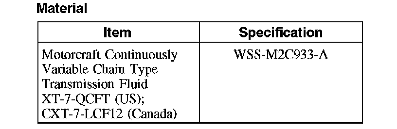 CAUTION: MERCON (R), MERCON (R) V, MERCON (R) SP, Motorcraft Premium Automatic Transmission Fluid and Motorcraft Continuously Variable Chain Type Transmission Fluid are not interchangeable transmission fluids. The use of any fluid other than what is recommended for this transmission will cause transmission damage.