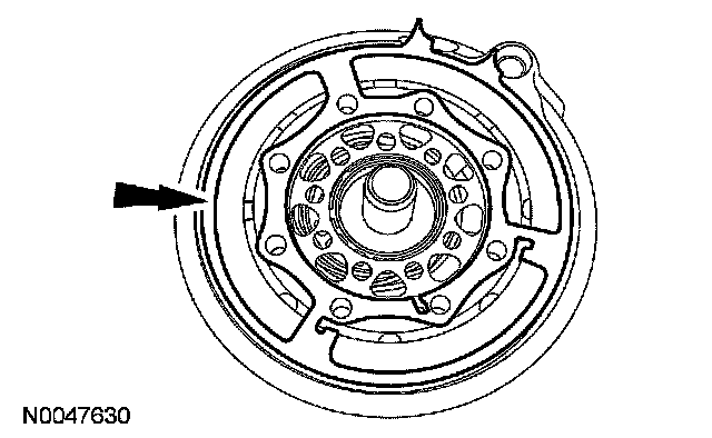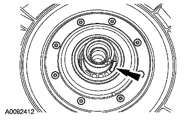 Note the location of the index slot in the pump for the correct installation of the torque converter. The tab on the torque converter must correctly line up with the slot on the pump.