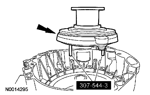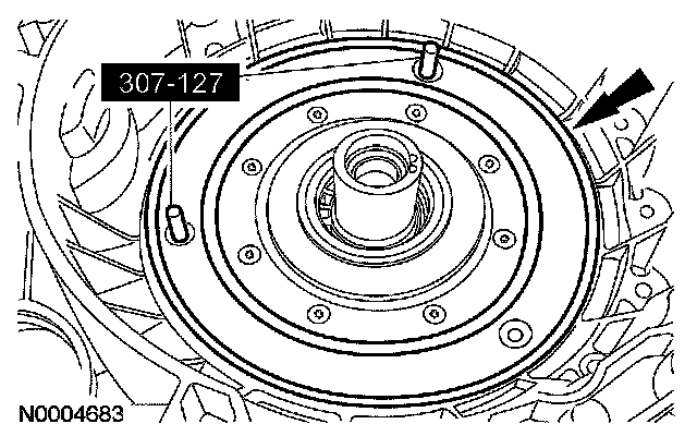 51. CAUTION: Do not set the torque converter in the fluid pump housing and rotate the torque converter to get it to fall into place or damage to the torque converter seal will occur.