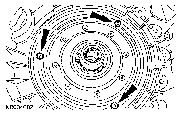 Position the converter housing in place. Install new transaxle converter housing bolts and tighten in 3 stages. These bolts are torque-to-yield bolts. Starting at No. 1, tighten the bolts in a counterclockwise rotation.