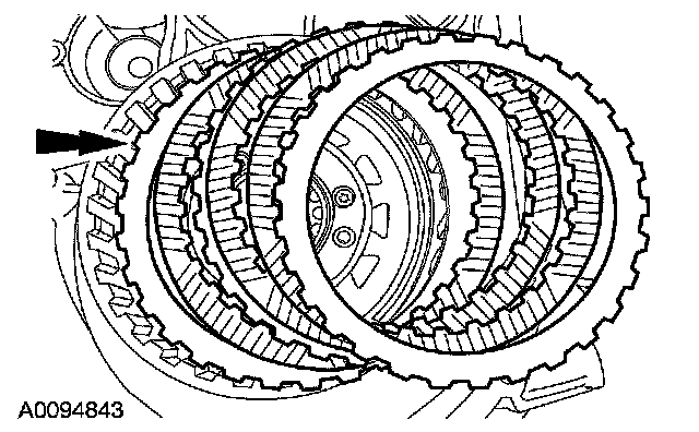 26. Install the reverse clutch plates, steel and friction, alternating between steel and friction, starting with a steel plate.