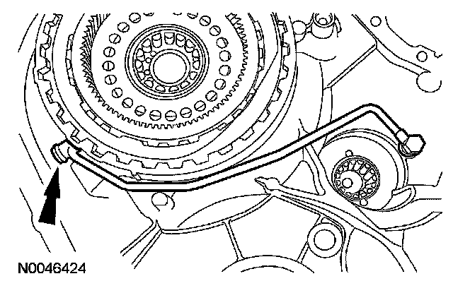 5 Install a new torque converter clutch pressure feed tube.