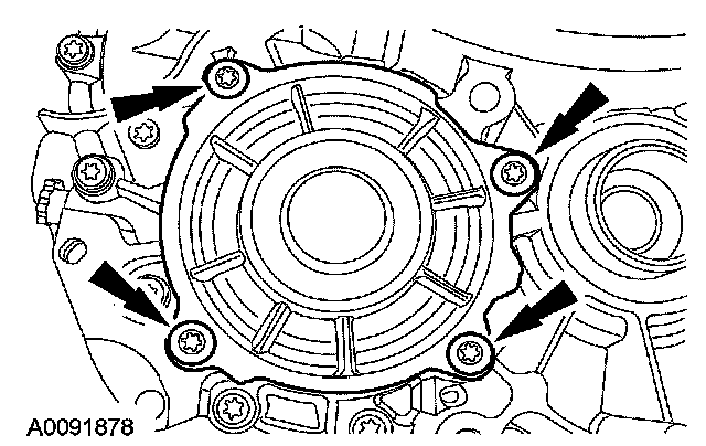 10. From the opposite side of the case, install the fluid pump assembly into the transaxle case.