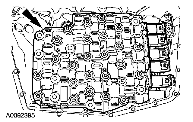 46. CAUTION: Make sure that the fluid filter pickup tube seal was removed from the bore when the filter was removed. Failure to remove the seal prior to installing the new filter will result in transaxle failure.